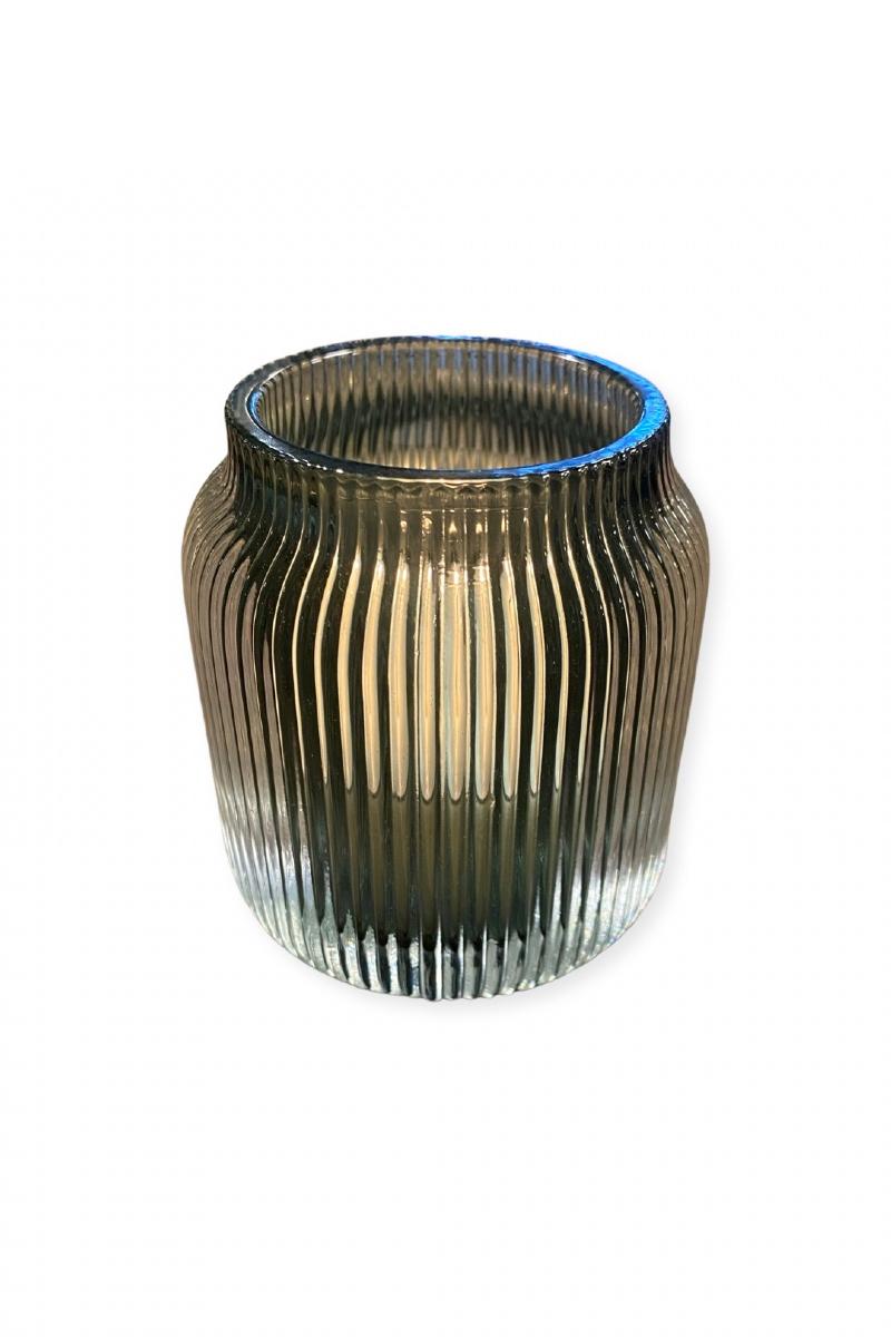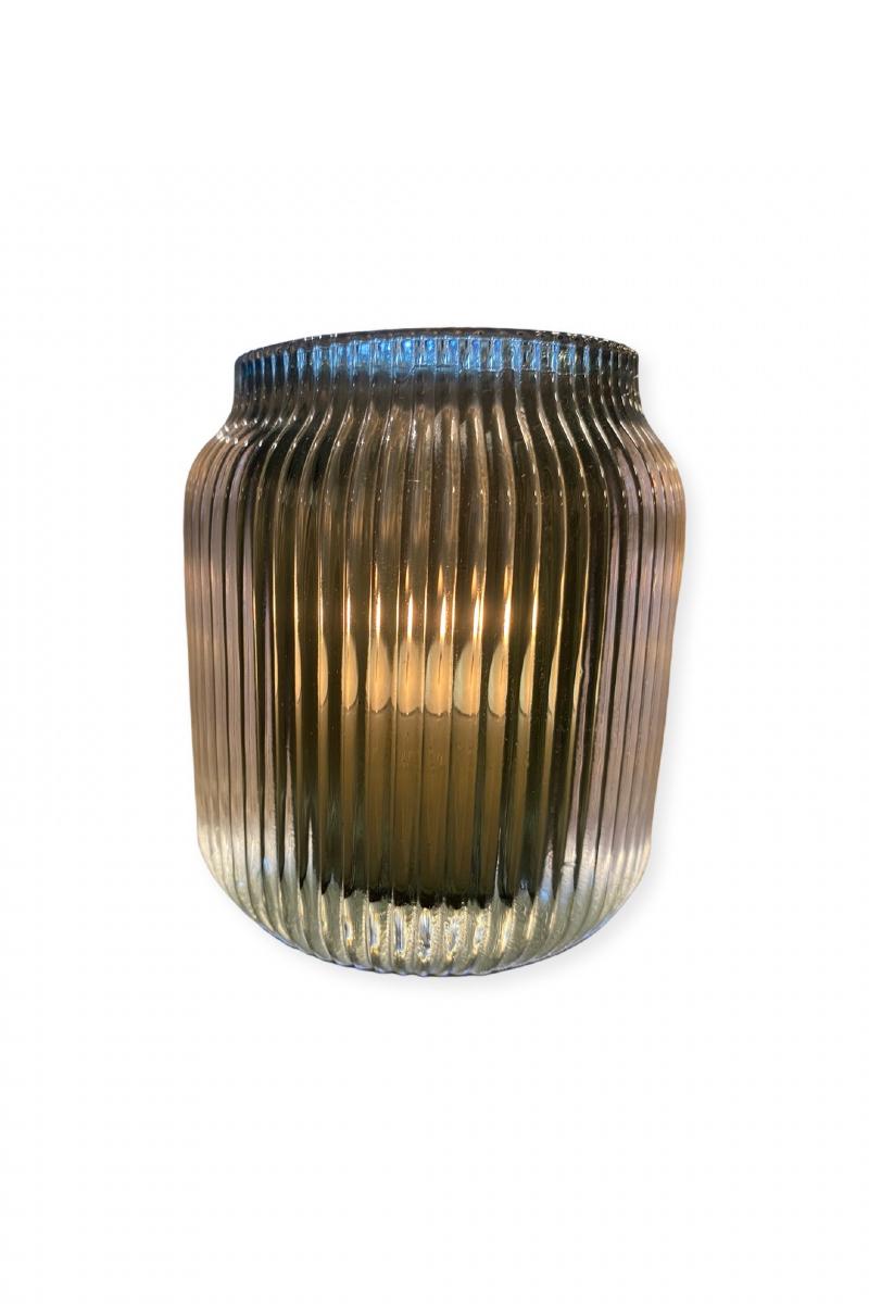 Glass telysholder grønn m/riller H: 9D:5,5