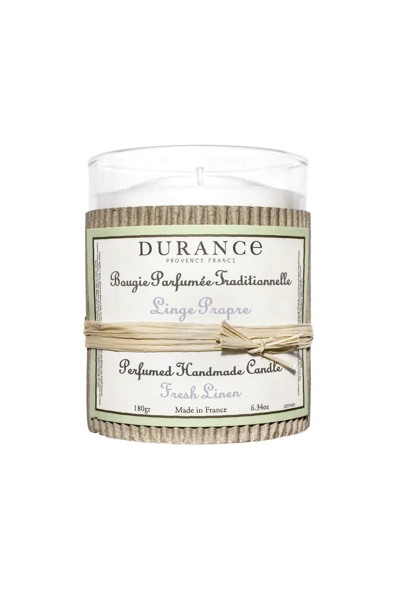 Vakkert duftlys i tidløst design. Med naturlig høykvalitets voks, eteriske oljer og bomullsveke (uten bly i enden av veken). Duften er laget av Durance sin egen Parfymør i Grasse, og gir en mild og vedvarende duft i rommet.