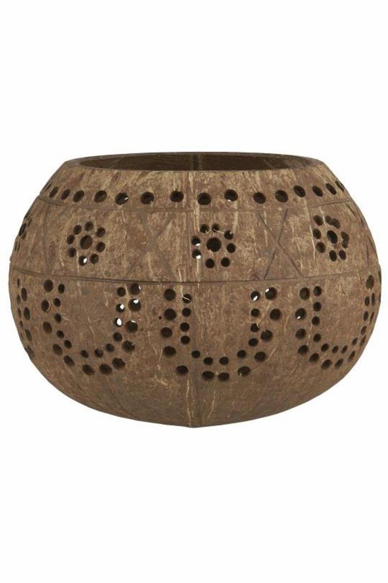 Lygte m/blomster hulmønster kokosnød varierende størrelser