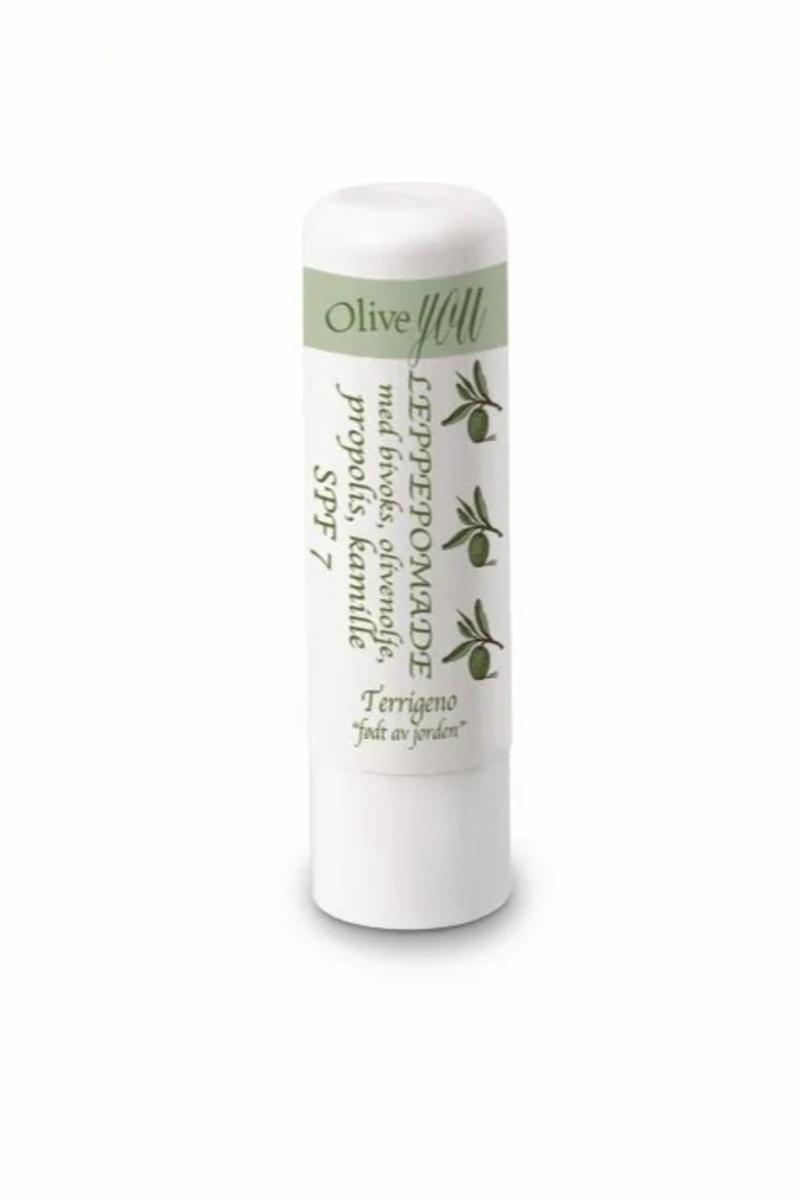 Oliven Leppepomade med propolis og kamilleolje som mykgjør, samt bivoks som forseiler fuktigheten i leppene. Meget god konsistens og duft.Solfaktor 75,5ml